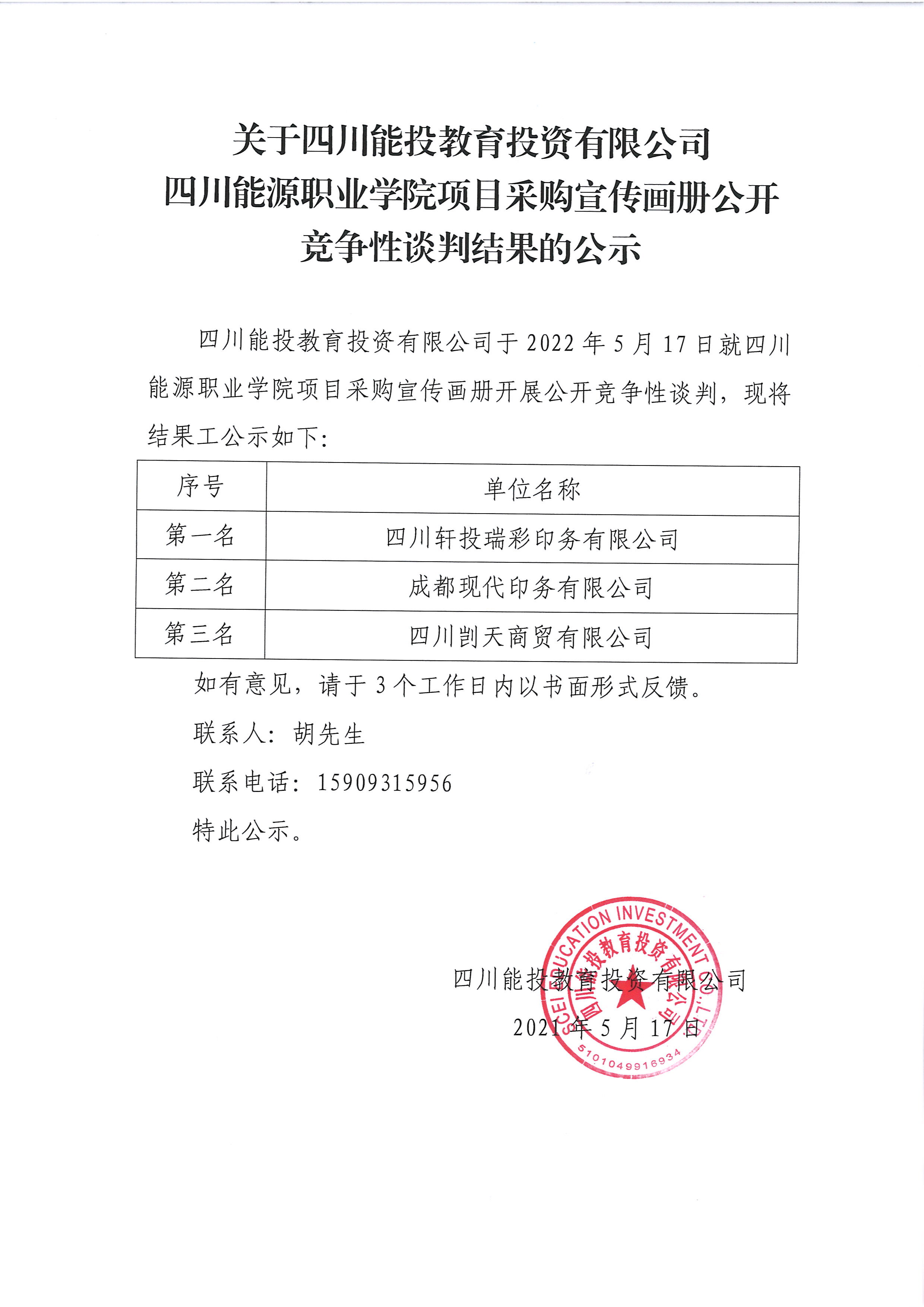上一條:關于四川能投教育投資有限公司四川能源職業(yè)學院項目資金收支計劃咨詢單一來源采購結果的公示