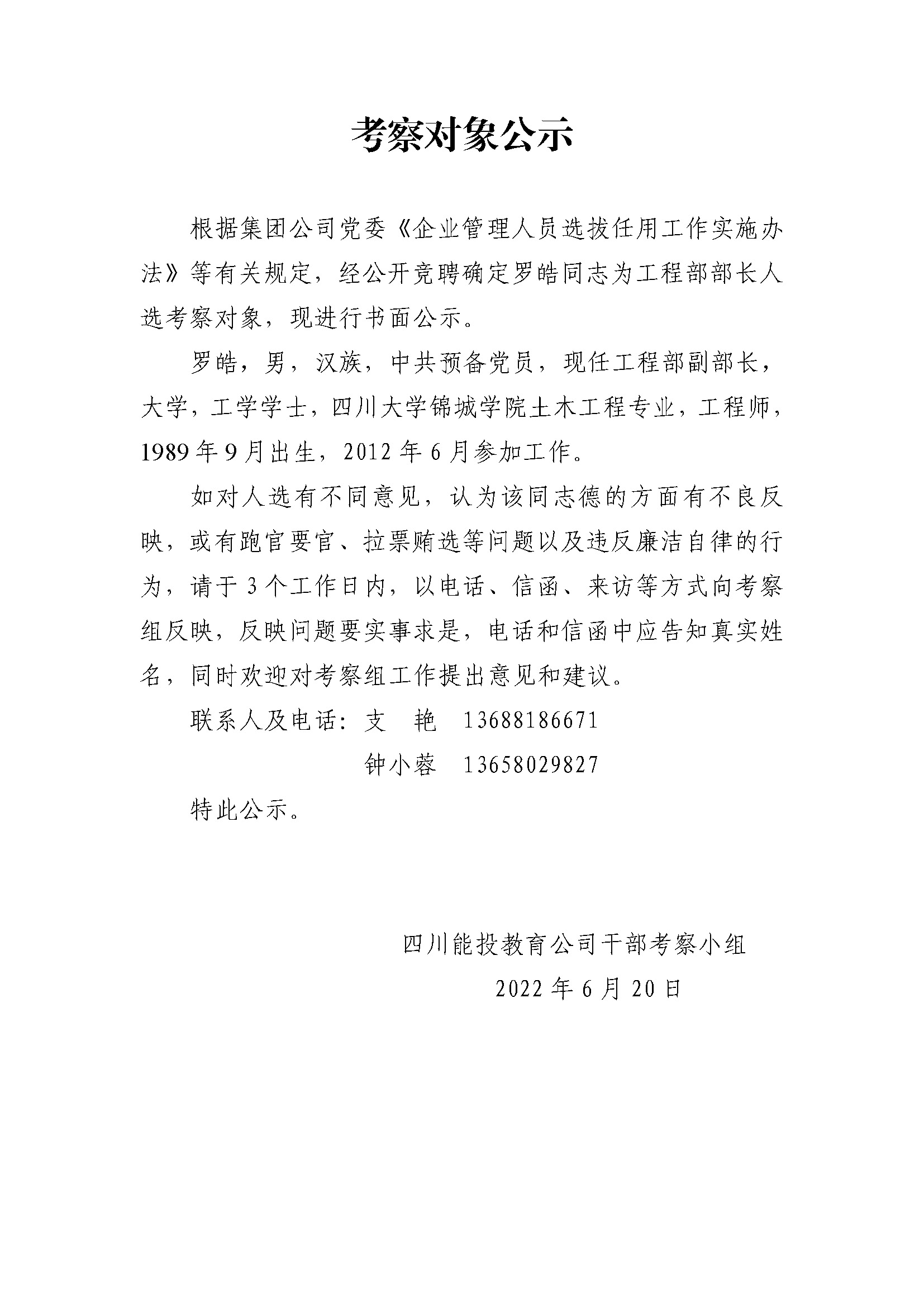 四川能投教育投資有限公司關(guān)于開展工程部部長公開競聘的公告